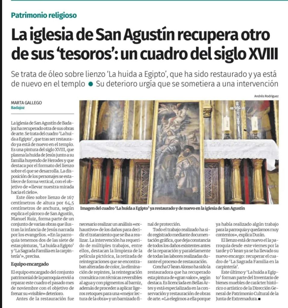 La iglesia de San Agustín recupera otro de sus ‘tesoros’: el cuadro ‘La huida a Egipto’ del siglo XVIII.